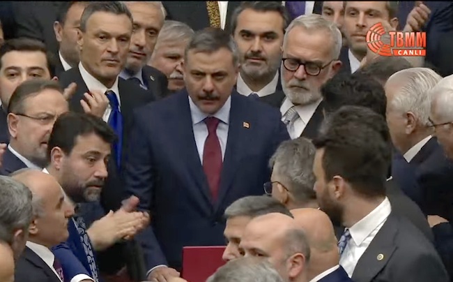 Bozdağ, gündem dışı konuşmaların ardından Adalet Bakanlığı’na atanan Akın Gürlek ile İçişleri Bakanlığı’na getirilen Mustafa Çiftçi’nin anayasa gereğince andiçeceğini açıkladı ve iki ismi Genel Kurul’a davet etti.